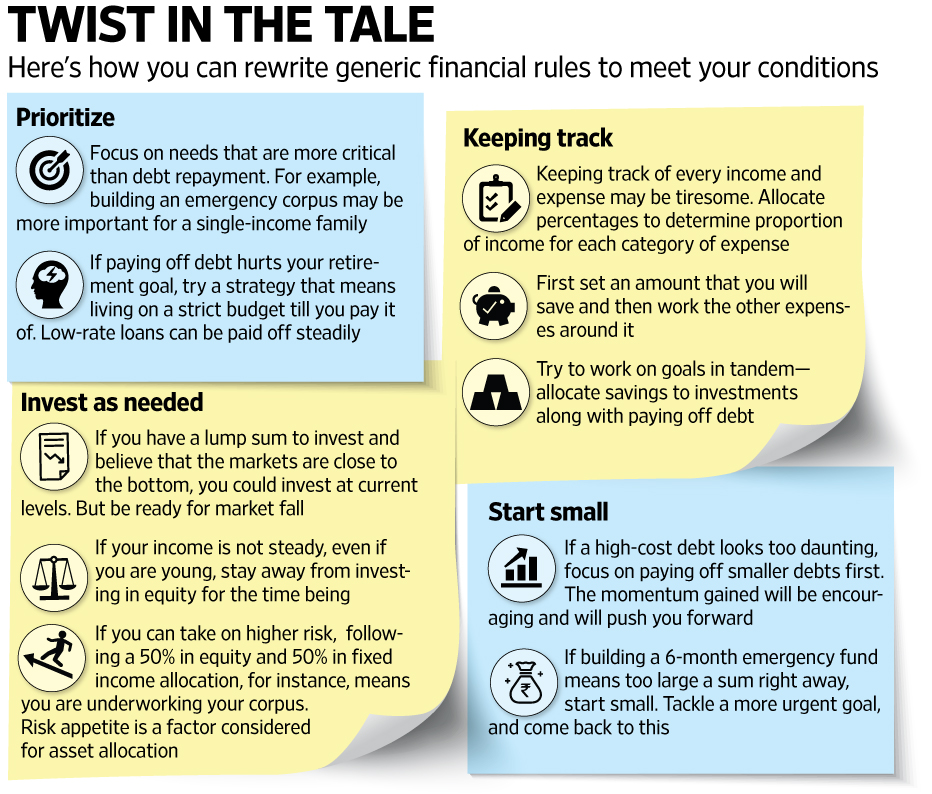 Financial rules are generic in nature and may not apply in all conditions. Take the rules and adapt them to your particular situation to get the best out of your money